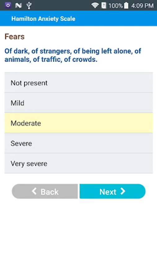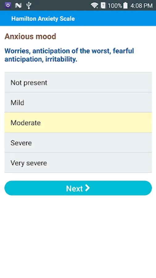This app will present the Hamilton Anxiety Scale questionnaire with 14 questions, and calculate your Hamilton Anxiety Scale score and assessment based on your answers to each question.