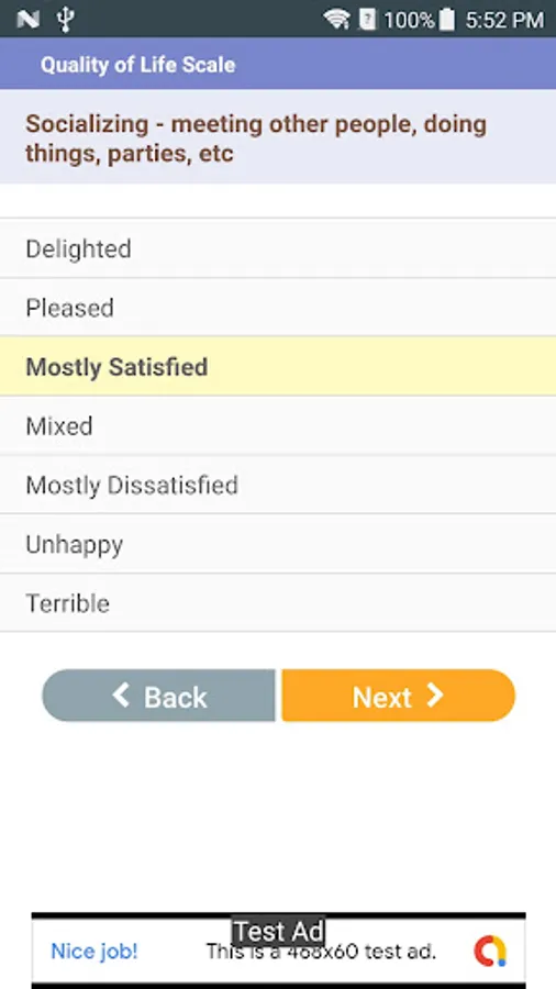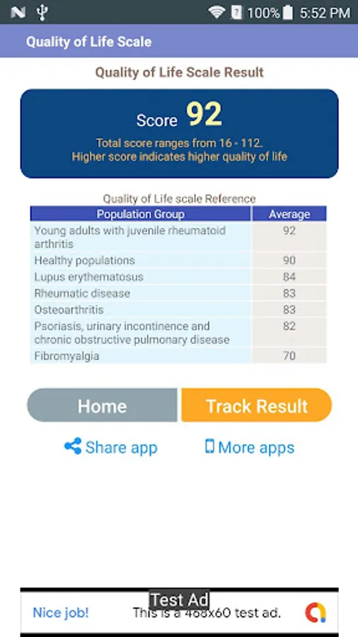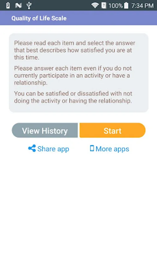 This app presents 16 multi-faceted assessment questions that can measure your quality of life and well-being with a quantitative score. A reference is provided as a comparison to the average score for multiple groups of the general population.