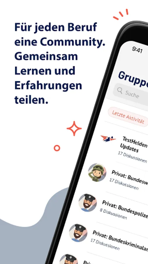 But with TestHelden you not only gain the opportunity to prepare for learning, but also access to our communities! In our groups, like-minded users exchange ideas about the respective test, share experiences and difficulties in the individual test.