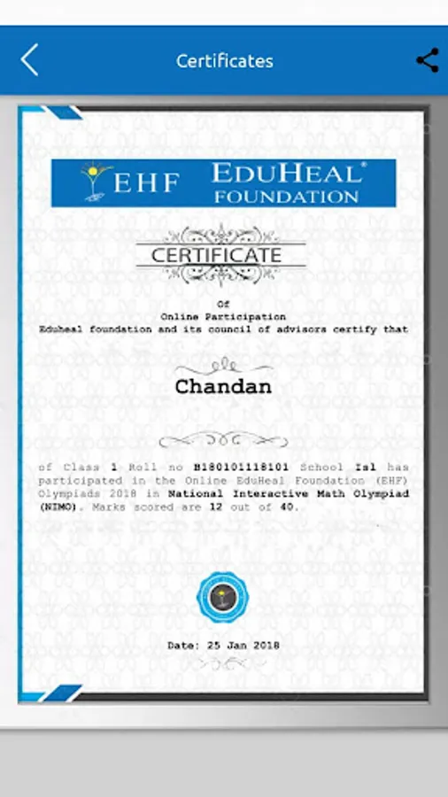 EHFOlympia Mobile App - Created by Eduheal Foundation(EHF).Pioneers in school online assessments since 2005.