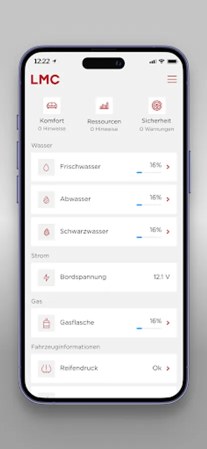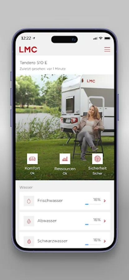 The information app for your LMC vehicle! With the LMC Home App, you always have your mobile home in view. Always keep an eye on the fill level of your water tank, the tyre pressure, the room temperature or even the drawbar load. For more driving safety, comfort and an even better bond with your vehicle.