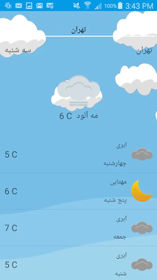 In the Android Weather app you can find out the weather in the city in the coming days by entering the name of the city you want. This app will tell you the weather for the next five days based on Celsius.