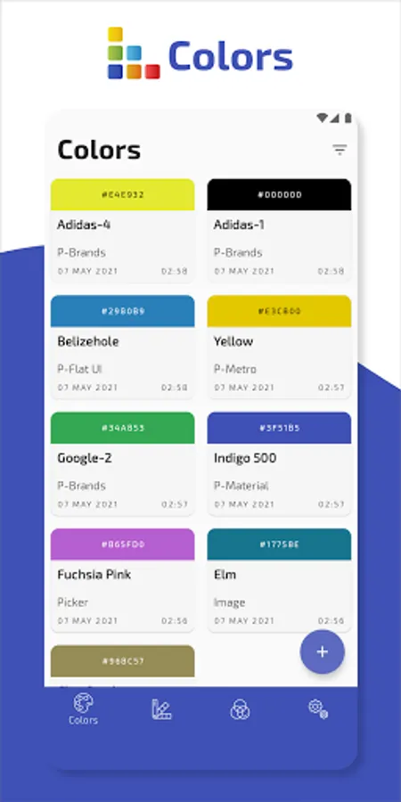 Colors: A tool that will help you with everything you need in the colors world. You can add colors in various ways like camera, images, picker, or a list of preloaded colors and brand colors.