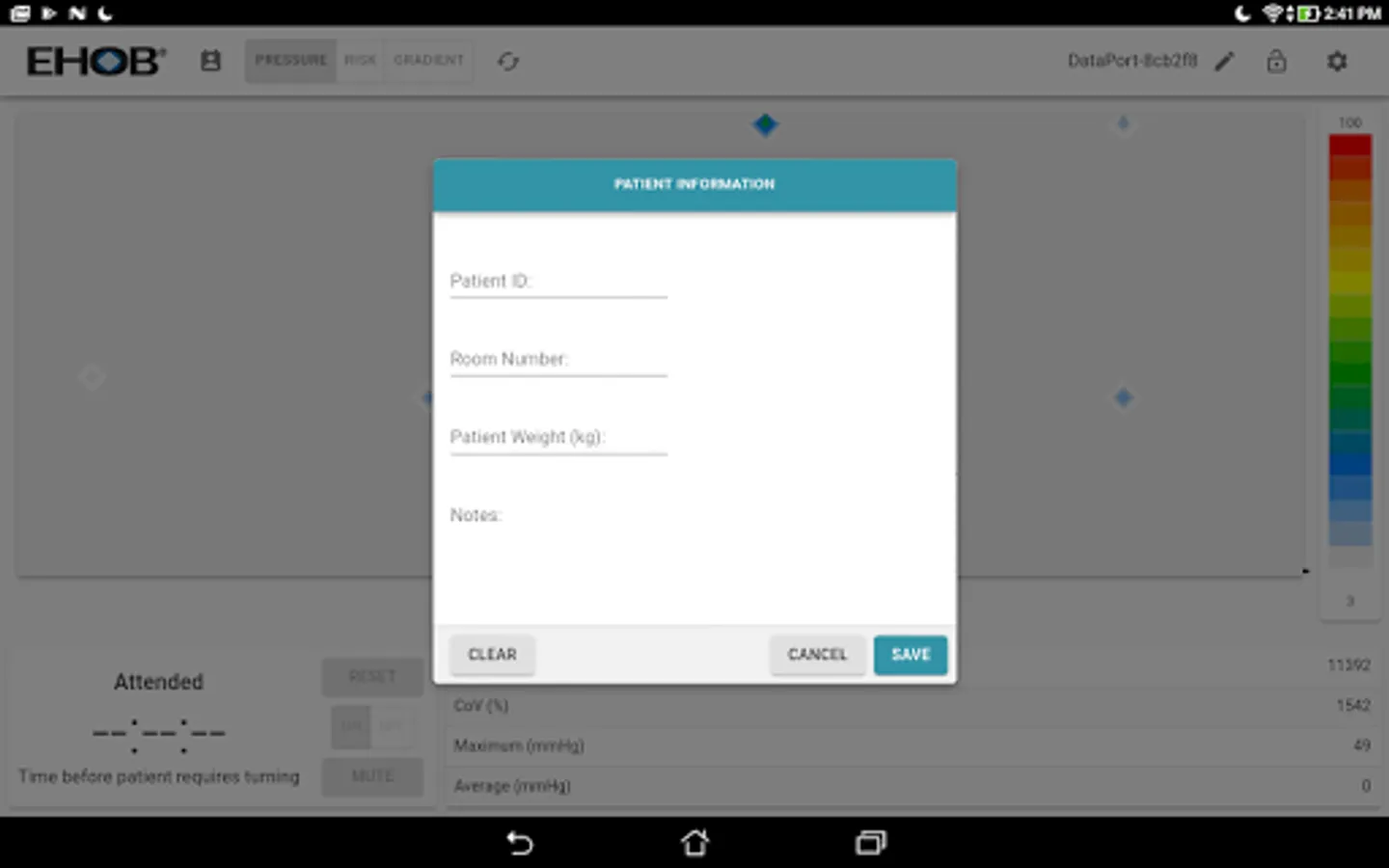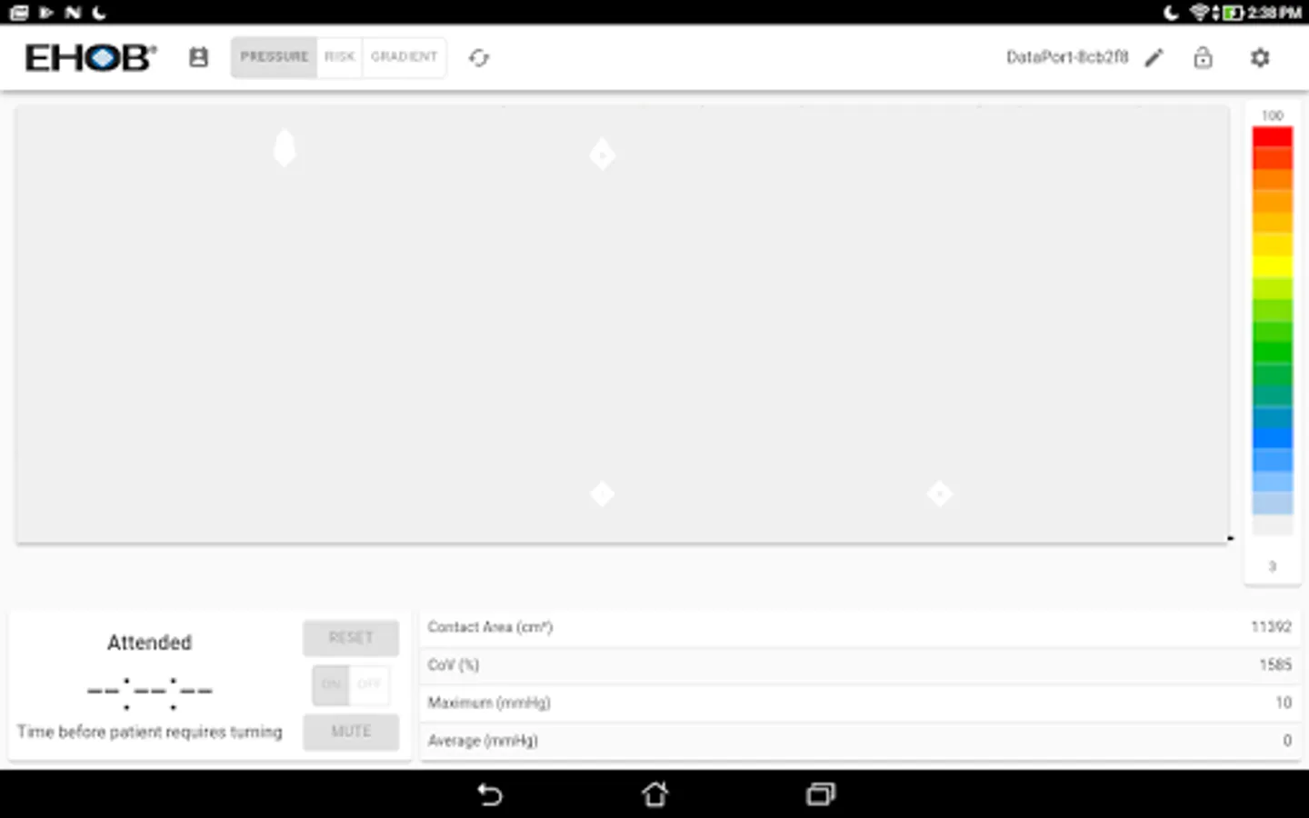 Using a EHOB Bed Monitor with a Dataport allows a user to easily access Risk and Gradient information. The software also includes a timer option with selectable time periods. The Bed Monitor provides the patient or caregiver with essential information for improving patient care and reducing the expense of healing wounds.