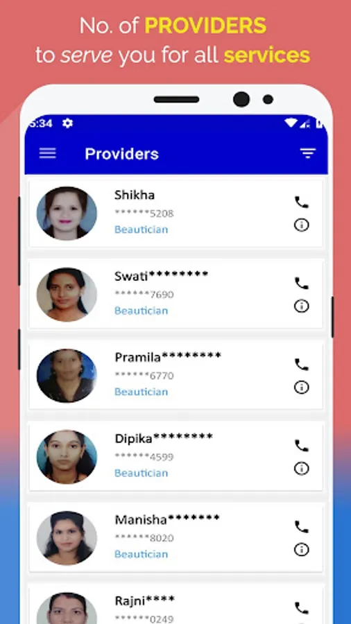 It is a Home Service provider application. Get Plumber, Electrician, Carpenter, Garndener, Driver, Mason, Painter, Labour, Home Appliances Repair, RO Services, Pest Controls, AC Repair and Servicing and other home services. All home related services can be availed easily through one call.