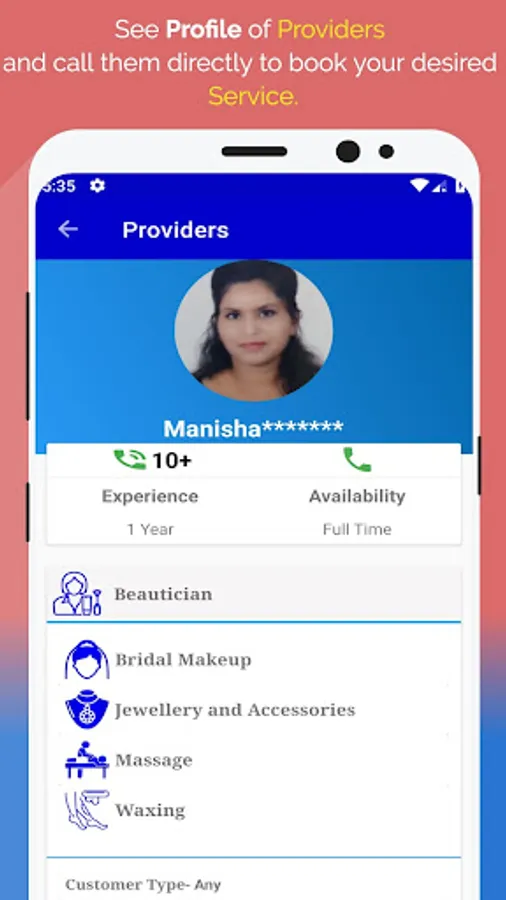 Also Any user can registered himself as Home Service Consumer through the App in any Indian City and can request for available Home Services by making in-app calls to any available Registered Service Provider.