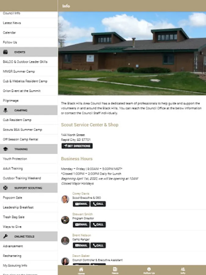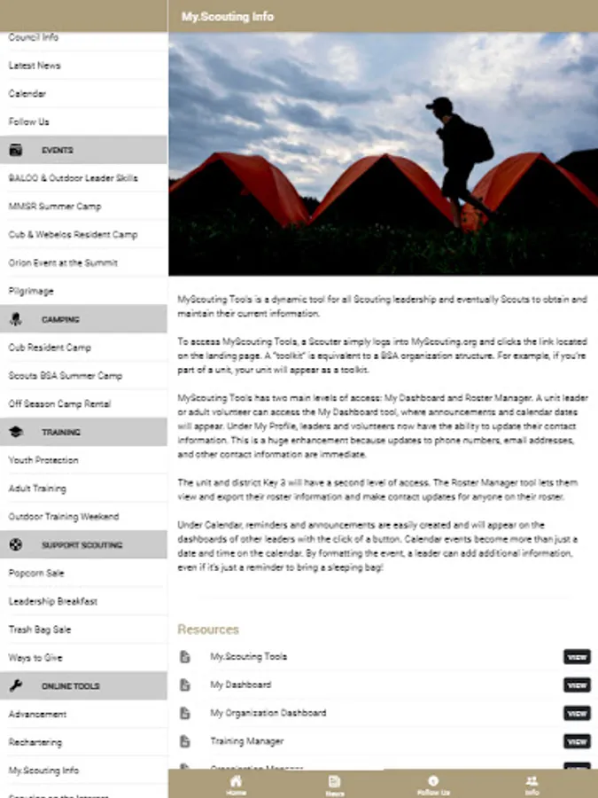 Find out information about local BSA units, volunteer opportunities, useful forms and information, our calendar of events, and contact our various staff members.
