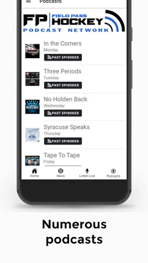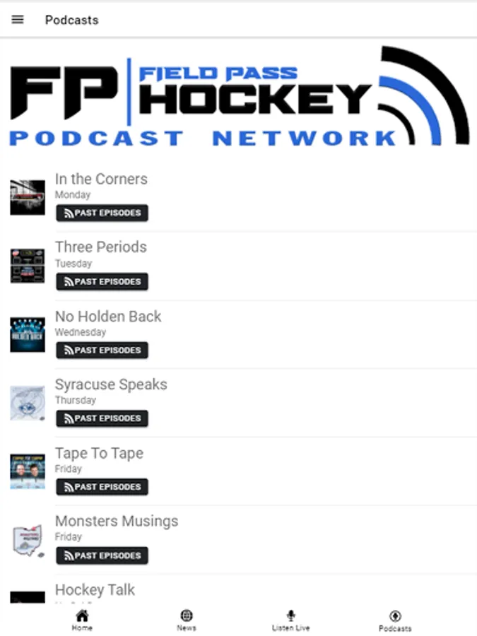 * Easy access to all the broadcasts from our Field Pass Hockey Podcast Network
