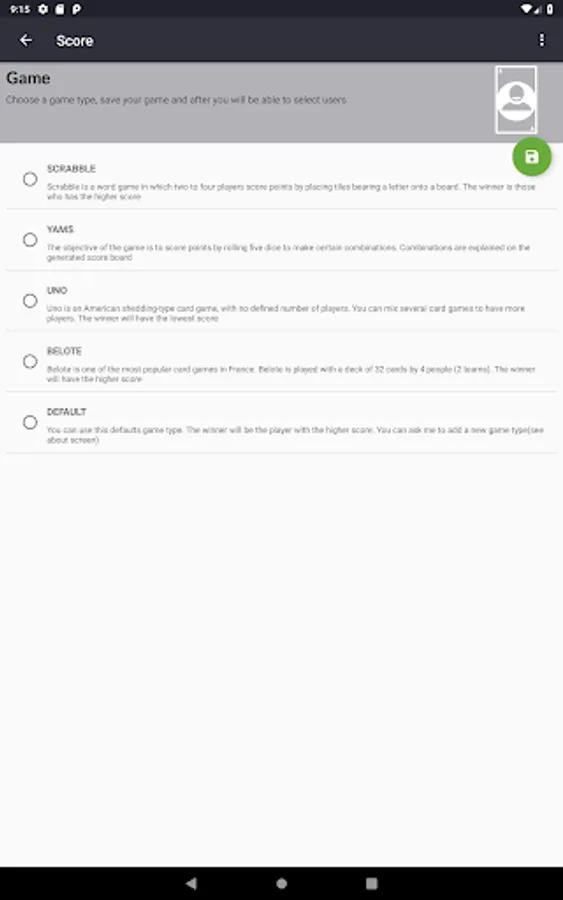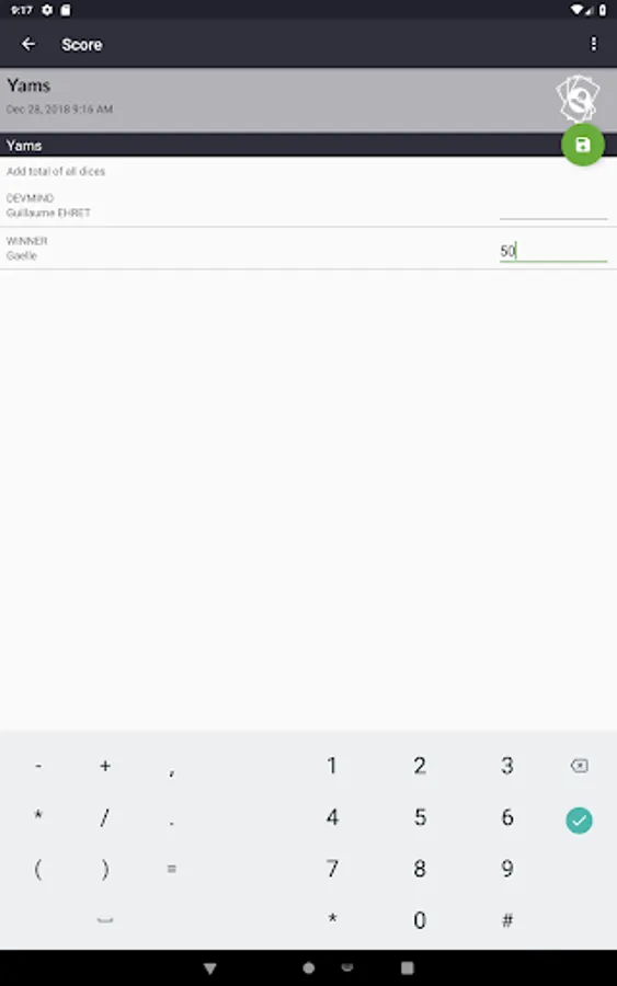 You don't need to search anymore a piece of paper and a pen when you're playing a game with your friends. This application allows you to type scores and quickly see who wins or loses.