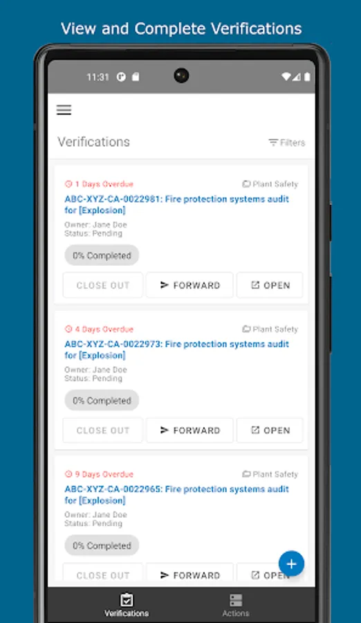 The VelocityEHS mobile app gives you the ability to conduct critical control verifications anywhere, anytime. Once your device is connected to the internet, the app automatically syncs with your VelocityEHS account, ensuring submitted reports are uploaded and administrative changes are applied.