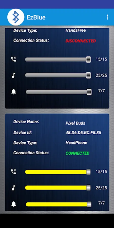 Also, if your Bluetooth device volume settings returns to its default settings After going into standby mode or getting disconnected for any reason, this application will automatically set those values to your preset settings.