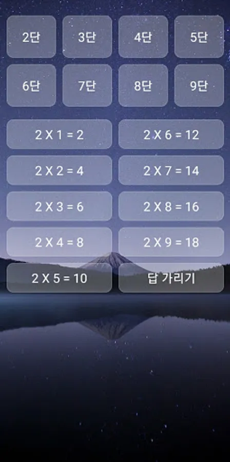 By clicking the button, you can study the multiplication table set from 2 to 9 columns.
