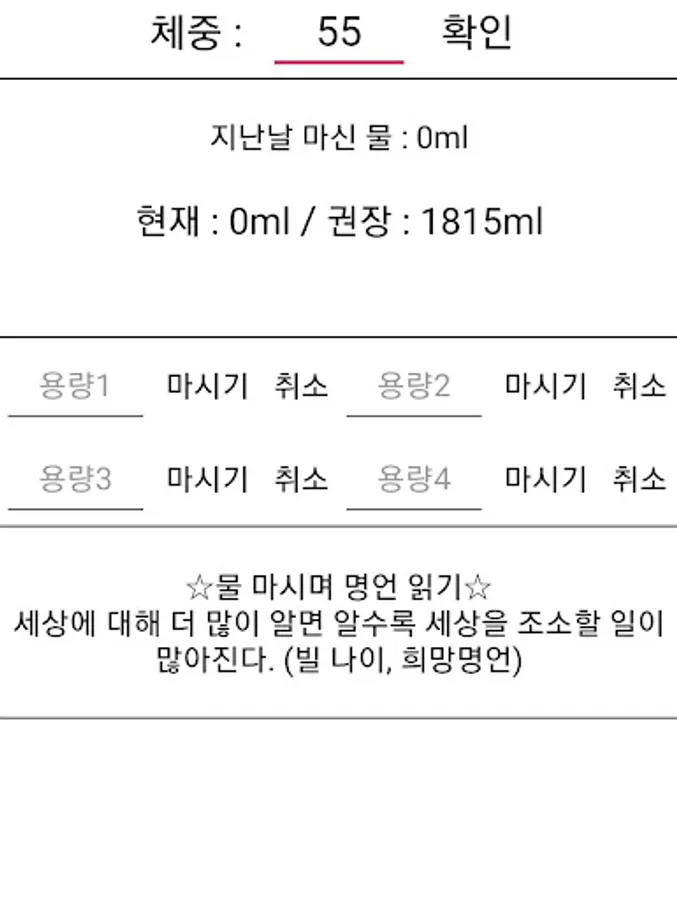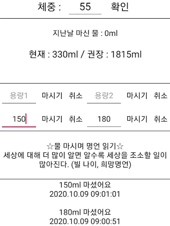 If you enter and press drink, the number increases by that number, and if you press it incorrectly, you can subtract by pressing Cancel.