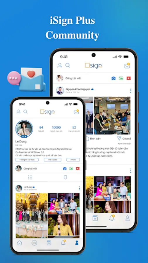 iSign is a multimedia connection application exclusively for iSign community, sharing positive things in life, from business, health and positive lifestyle, without discussing politics, religion. , or negative social topics. The application uses social network accounts as the foundation.