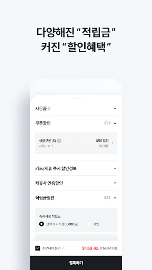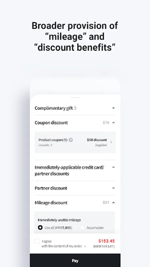 You will receive 0.2% of any purchase as mileage and can participate in diverse events to receive H.Points, after which you will be eligible for H.Point benefits. H.Point Plus mileage is also accepted.