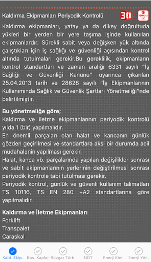 - appropriate inspection and testing standards to international standards with modern test equipment in the light of "Health and Safety Requirements in the Use of Work Equipment Regulations" should;