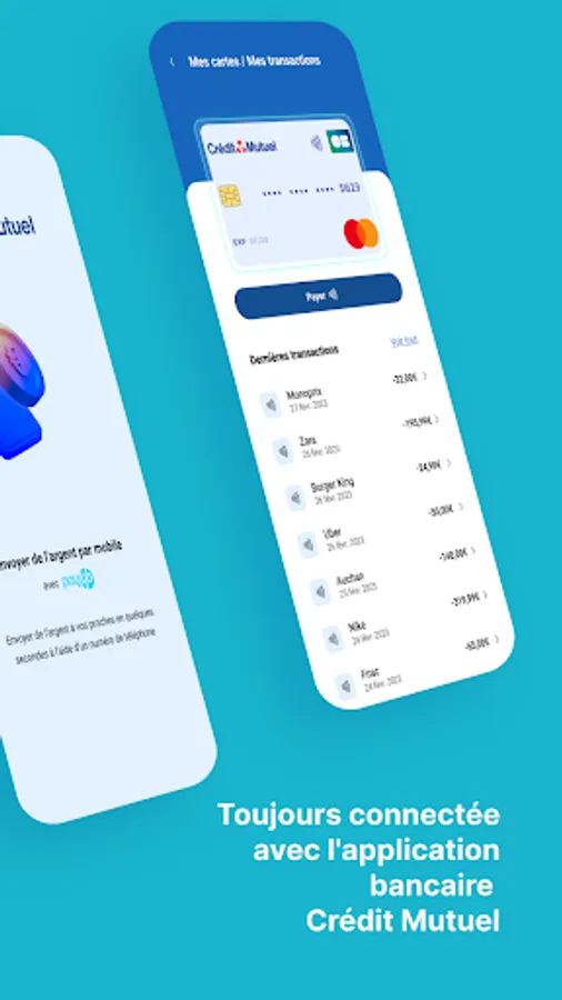 Quickly download the application to manage your mobile payments: Crédit Mutuel Pay: Contactless payments, transfers by mobile number, fast payments... Access all the essential features in a single mobile application.