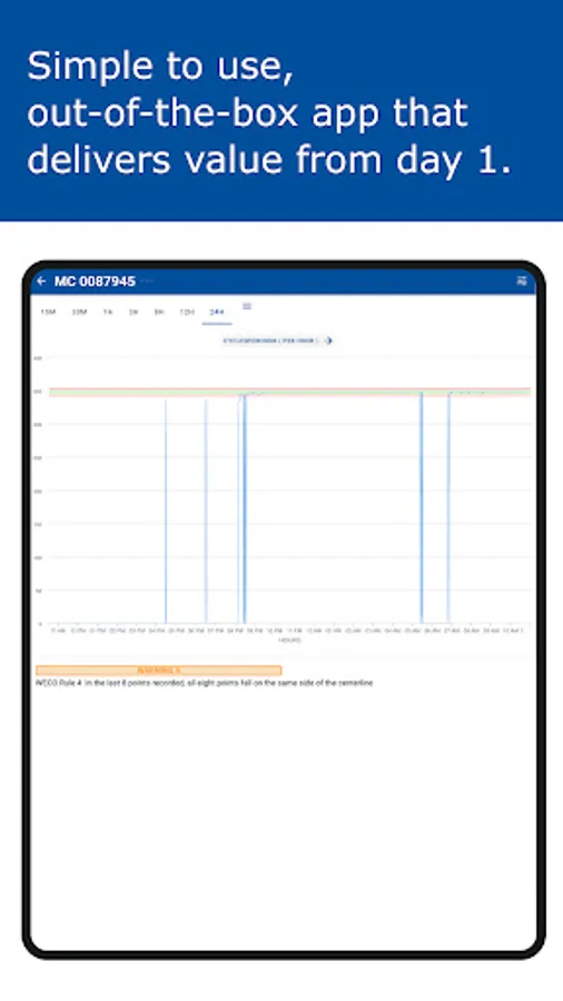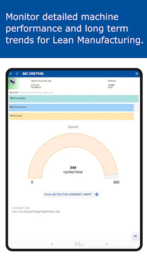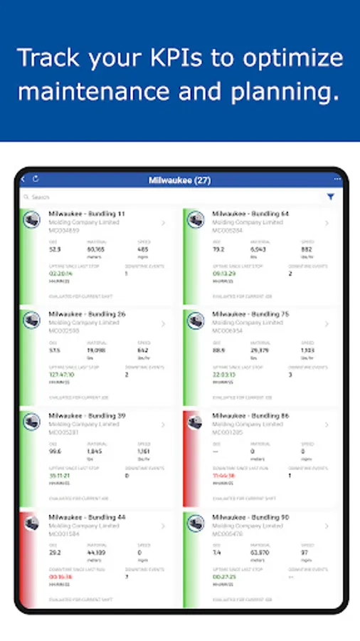 Shibaura Machine owners can remotely monitor the productivity of their machines using this app. Key performance indicators supporting best practices in lean manufacturing such as Operational Equipment Effectiveness, OEE, are incorporated in visual status displays and trends.