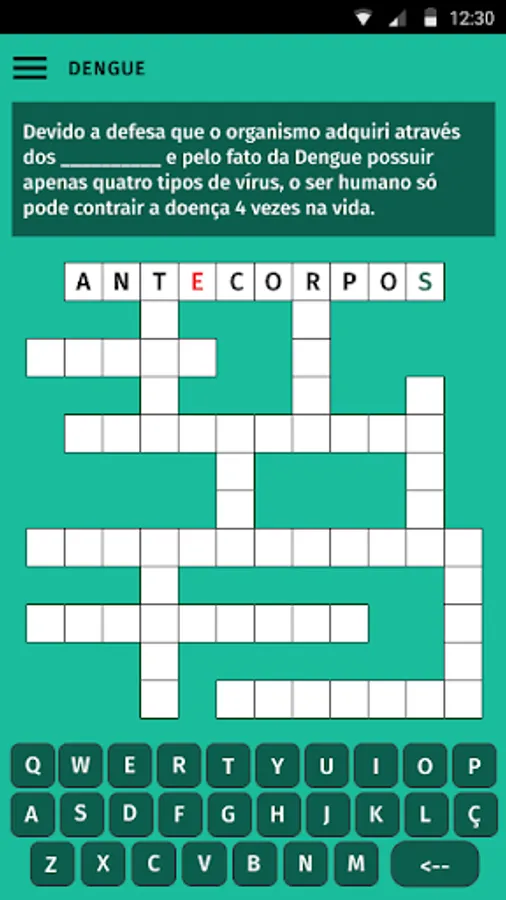 Crossword puzzle about the Aedes Aegypti mosquito and related diseases: dengue, chicungunya, yellow fever and zica. Each disease has 3 levels of difficulty, in which the player is introduced to curiosities and important information about the topics.