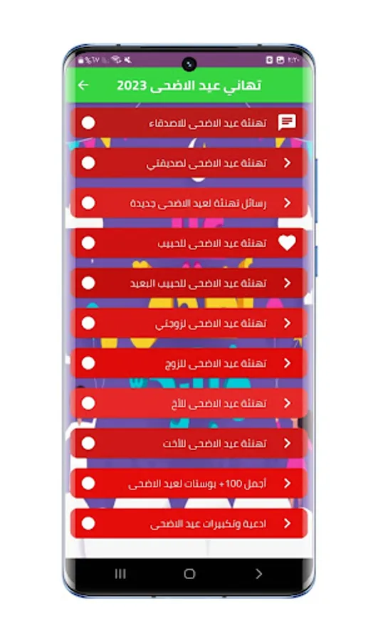 The contents of the application are messages and congratulations for Eid Al-Adha 2023