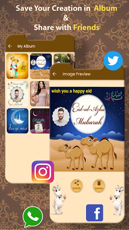 Do you want to make Super Eid Mubarak cards, Eid ul Adha GIFs, Photo Frames, Eid Day Face Placers & DP & Profile Pic Maker in a very easy way? Are you ready to celebrate Eid Festival? Find greeting cards with customized Bakra Eid cards templates of different countries with respect to their language? The app offers diverse & attractive ideas to wish this special day to your beloved ones. The app has features of mesmerizing collection of Eid ul Adha greeting cards, EID GIFs, HD Photo frames, Face Placer & Stickers. Also, you can frame up pictures of your’s beloved ones in Photo frames to wish Eid greetings that you can personalize with advanced photo editing tools. Moreover, you have a face placer tool with advanced image editing tools to show up eid dress, animals, picture with animals. You can also save your creation in a dedicated in-app Album and share via any social media platform.