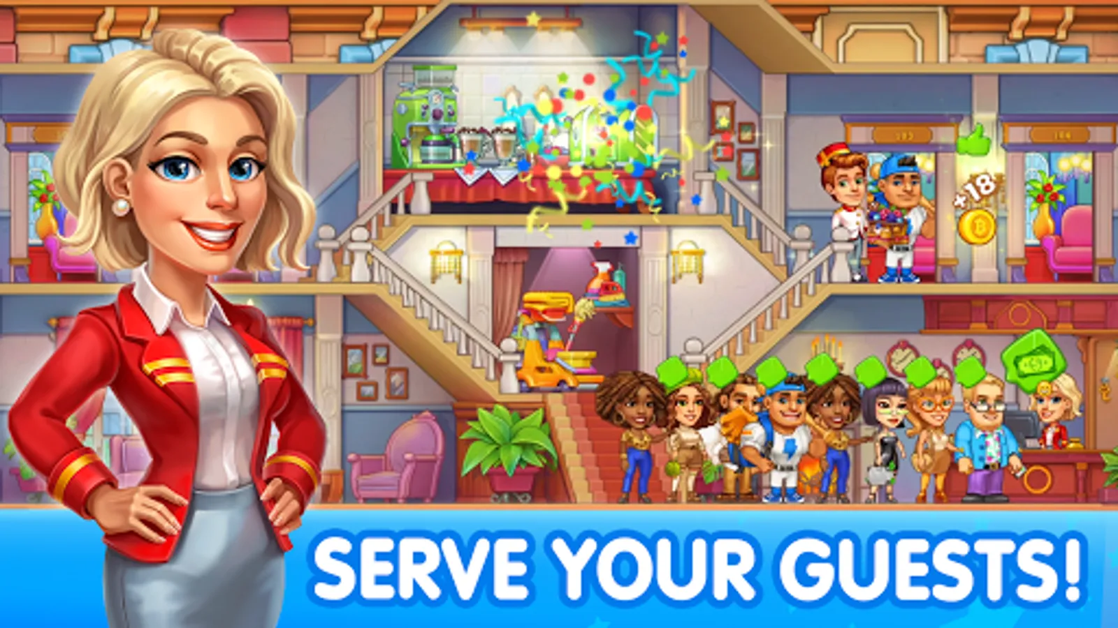 Open hotels all over the world, cook delicious food and drinks, and upgrade your hotel to get more likes and regular customers. The better the equipment, the more coins you get from your guests. Write your own doorman story.