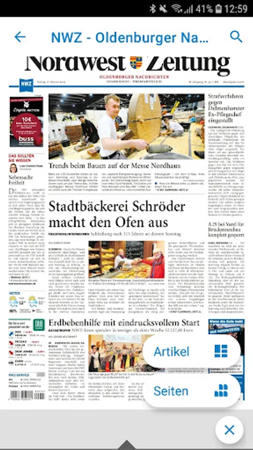 With our Northwest EPAPER you get a lot of newspapers without paper. Not only do you have access to all eight local editions of the NWZ ePaper, including Ostfriesland, but you can also use the ePaper editions of the Emder Zeitung, the Anzeiger für Harlingerland, the Wilhelmshavener Zeitung, the Jeversches Wochenblatt and the Sonntagsblatt. The ePaper evening editions are available to you from 9 p.m. the evening before. With an ePaper you protect your wallet and the environment. In addition, you are always well informed everywhere!