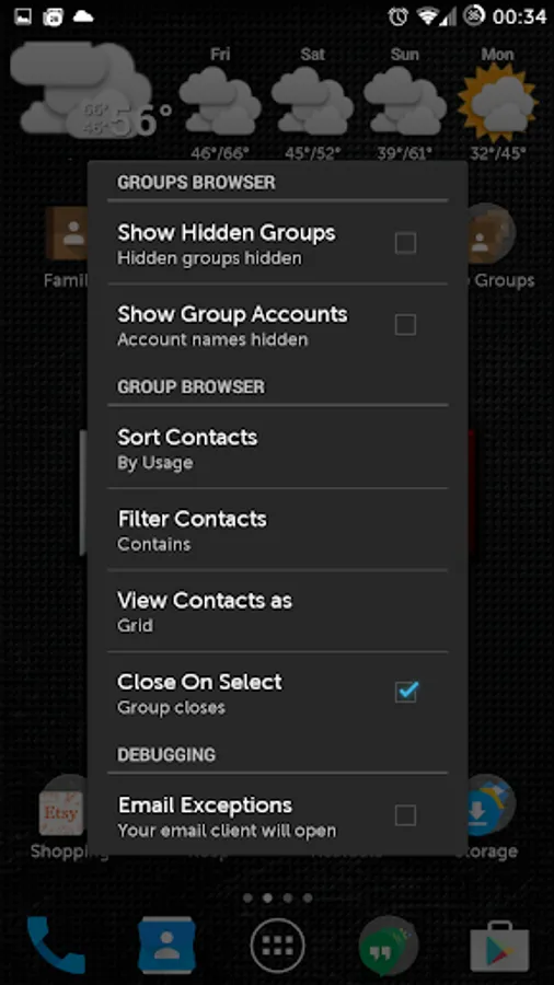 You can choose to have contacts in the groups sorted either alphabetically or by usage, with the most frequently contacted contacts at the top.