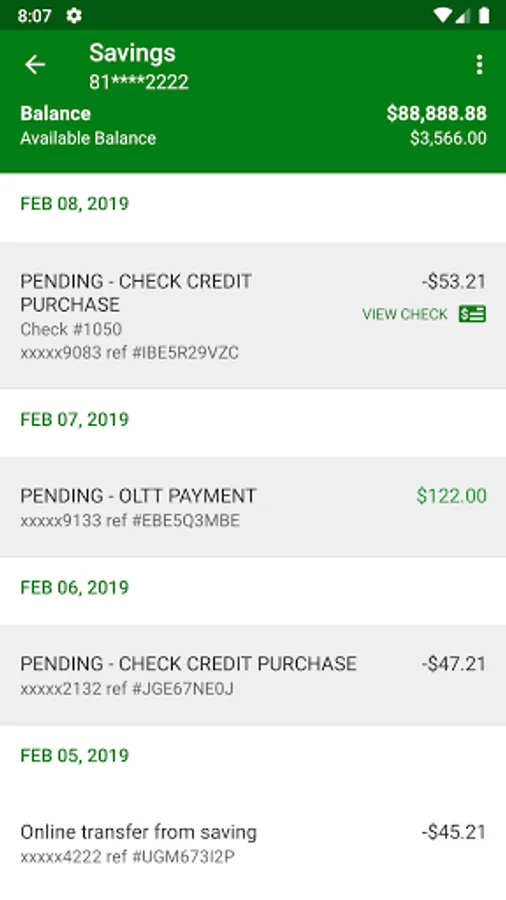 • - View recent transactions