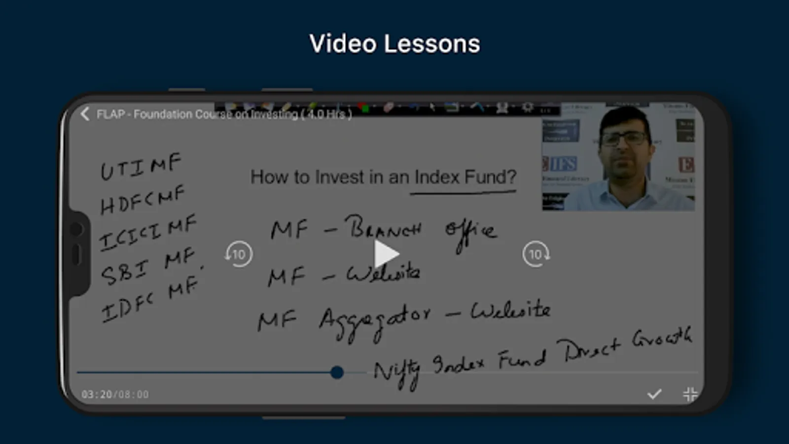 The purpose of e-learning app is to bring valuable investing knowledge to our learners anytime anywhere. With 36+ hours of video content available through the app, you have access to very valuable investing know-how all the time. Not only that, In case you have questions about something new you learnt, you can just as easily use the Q & A forum to clear your queries. Along with 36+ hours of video content, supplementary study material is also available in pdf, docx, excel formats.