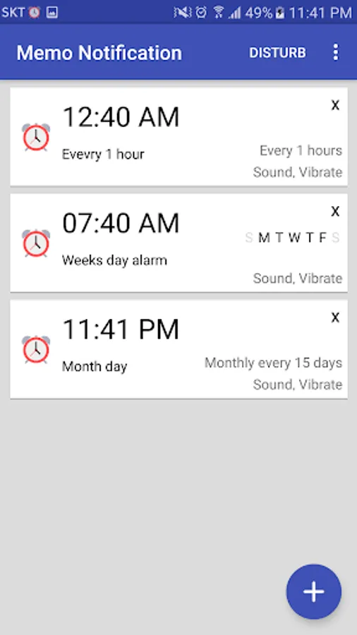 Notepad, note alarm in exact cycle and form, using minimal resources