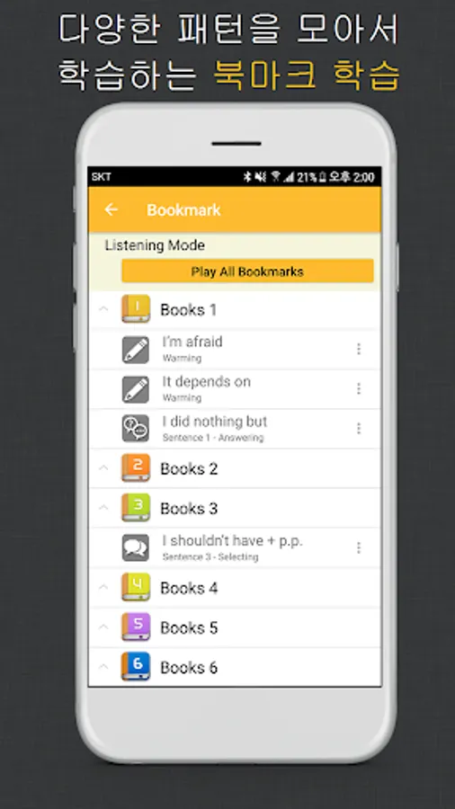 There is a bookmark function that you can collect and review only that you can not remember. You can play as you listen to music in the listen-only mode.