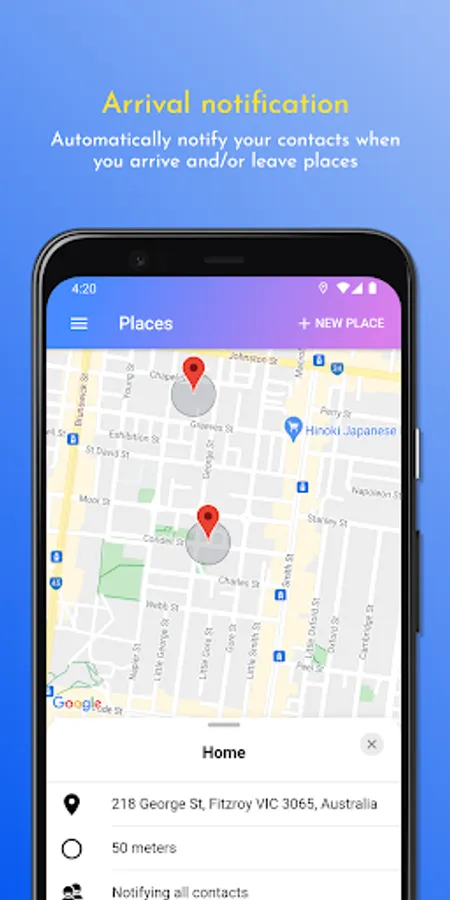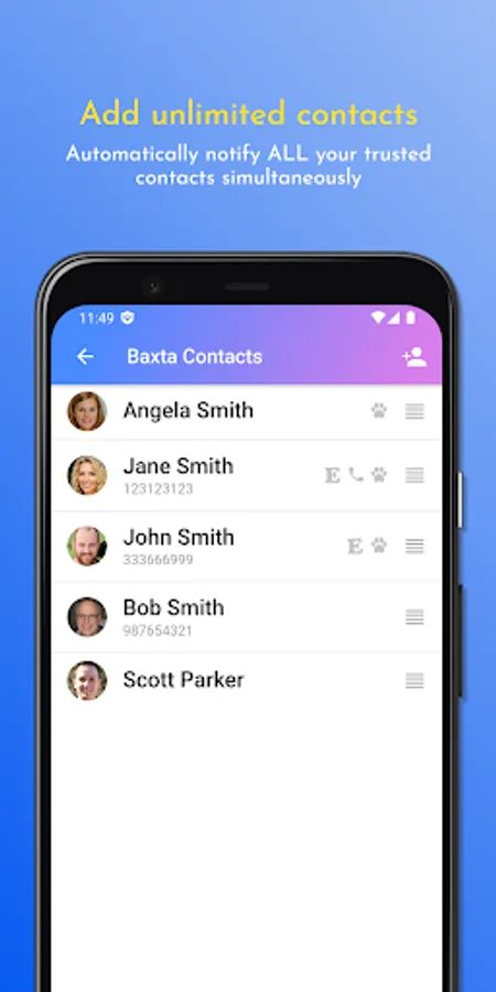 * Automatically notify notify all your safety contacts in an emergency via SMS