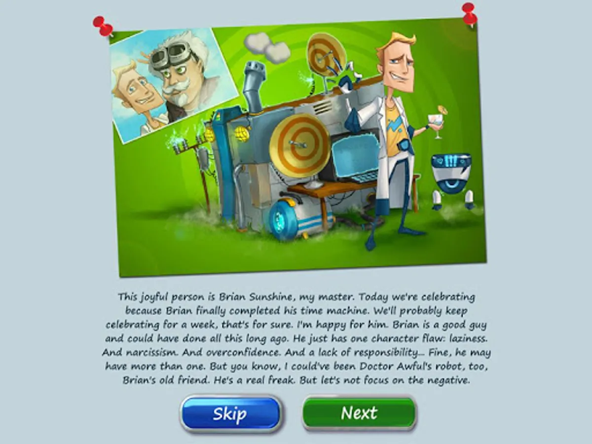 Your mission, should you choose to accept it, is to help Brian stop Doctor Awful in an adventure full of mystery, research, and of course, time travel. All that and more awaits in this exciting science fiction adventure thrillride! 50 unique levels, tons of different objectives, super cool settings and a fun and engaging plot are yours to explore now. Construct buildings, tame dinosaurs, manage resources and build other awesome structures. Simple controls and smooth game mechanics will help you get going in no time. But if you still don't understand something, you can always use the Help menu.