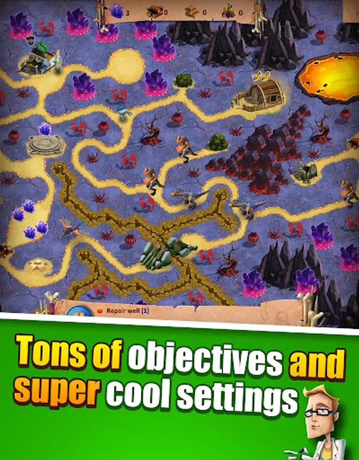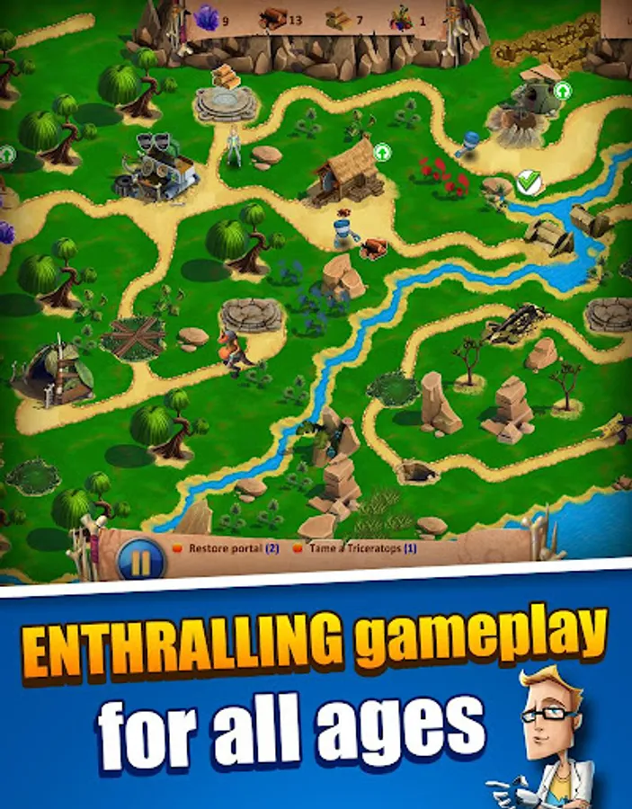 Your mission, should you choose to accept it, is to help Brian stop Doctor Awful in an adventure full of mystery, research, and of course, time travel. All that and more awaits in this exciting science fiction adventure thrillride! 50 unique levels, tons of different objectives, super cool settings and a fun and engaging plot are yours to explore now. Construct buildings, tame dinosaurs, manage resources and build other awesome structures. Simple controls and smooth game mechanics will help you get going in no time. But if you still don't understand something, you can always use the Help menu.
