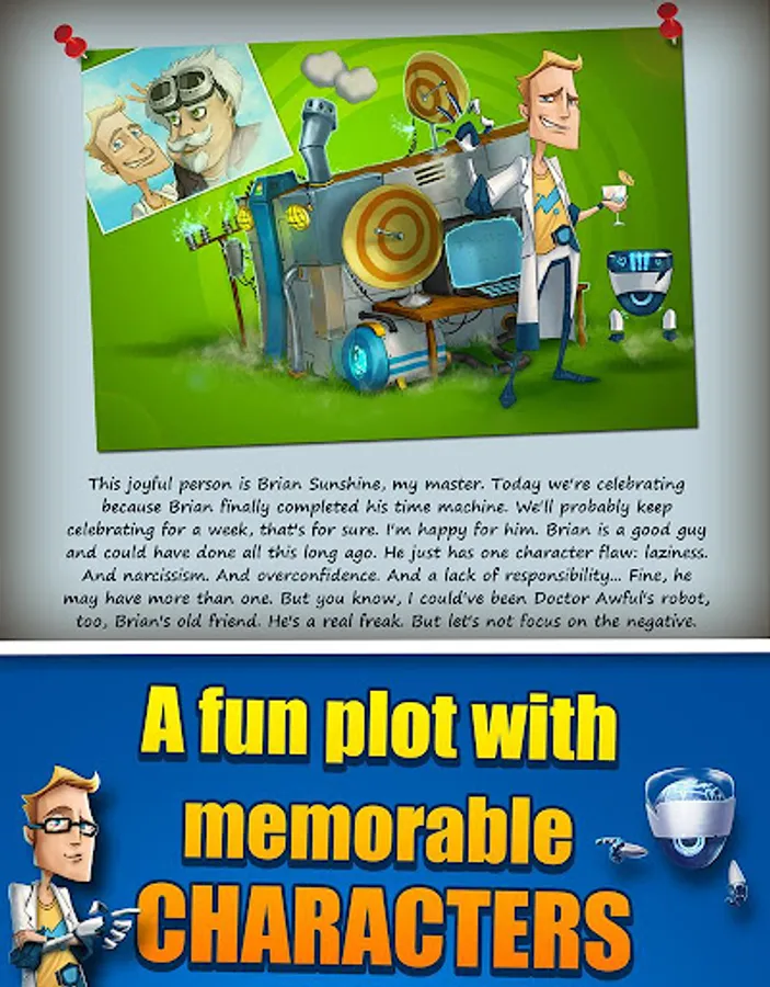 Brian, an outstanding (though some may say eccentric!) scientist, invented a time machine that sent him hurtling into the past! But forget about a leisurely stroll through the land of the dinosaurs: his old friend Doctor Awful is already there waiting! He invented his own time machine before Brian and has already managed to run amock in the past!