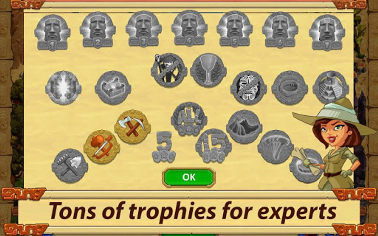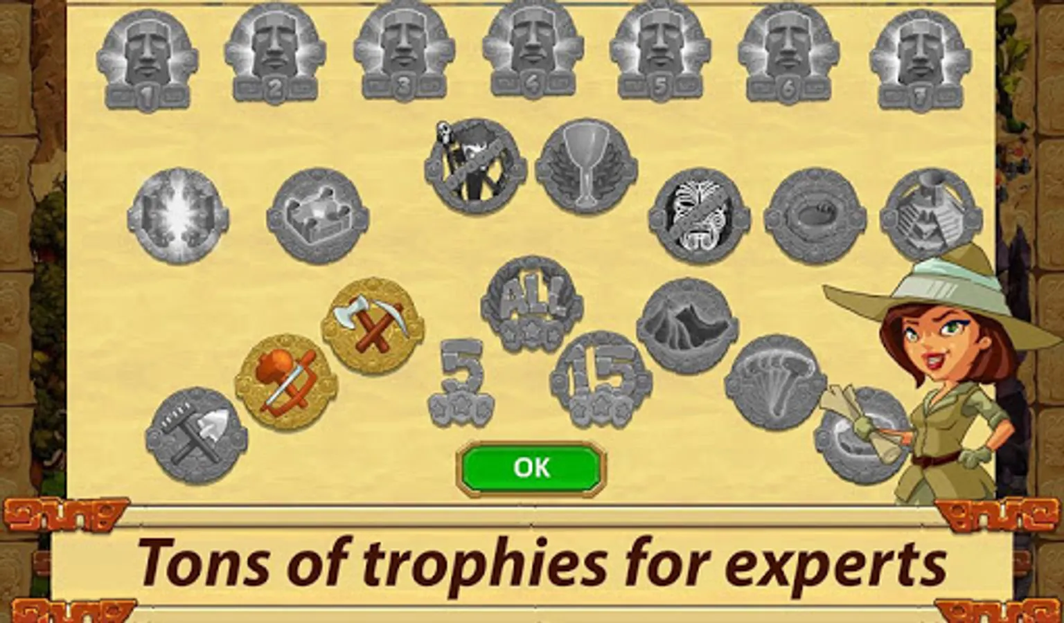 What will you find there? Get ready for island games, 49 vivid levels, lots of different objectives, increasing difficulty, a fun plot, and a unique world with captivating gameplay for any age. Build a city and manage resources, restore ancient statues, use powerful magic and draw power from holy places. With its simple controls and easy training, you’ll be playing like a pro in no time.