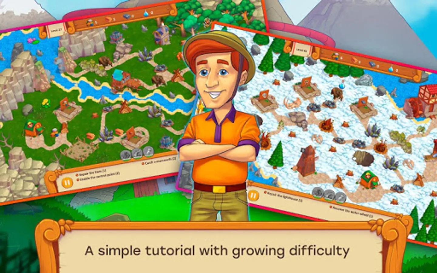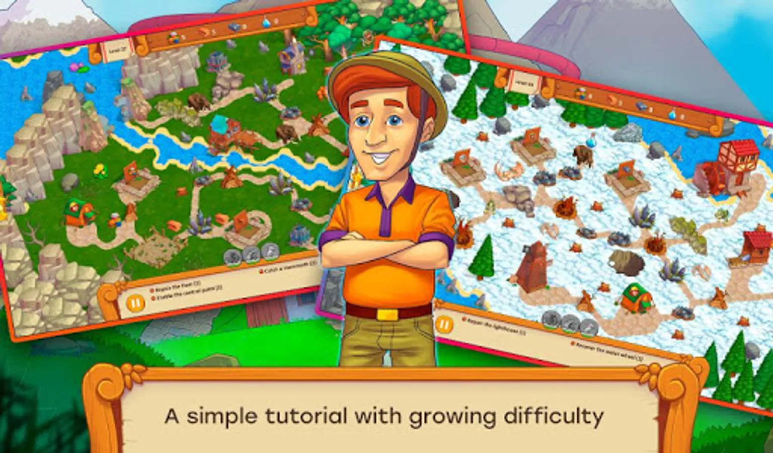 Many varied quests, over 50 levels, a fun storyline, simple and exciting gameplay, and a fantasy world – all this awaits you right now! Create portals, restore epic buildings, seek out extinct animals, overcome challenges and manage resources. Simple controls and a clear tutorial will help you easily learn the basics of the game.