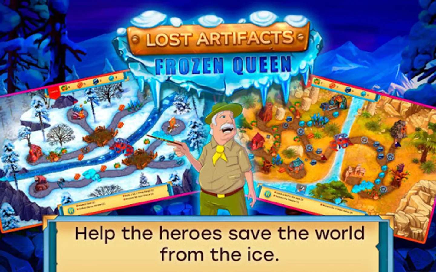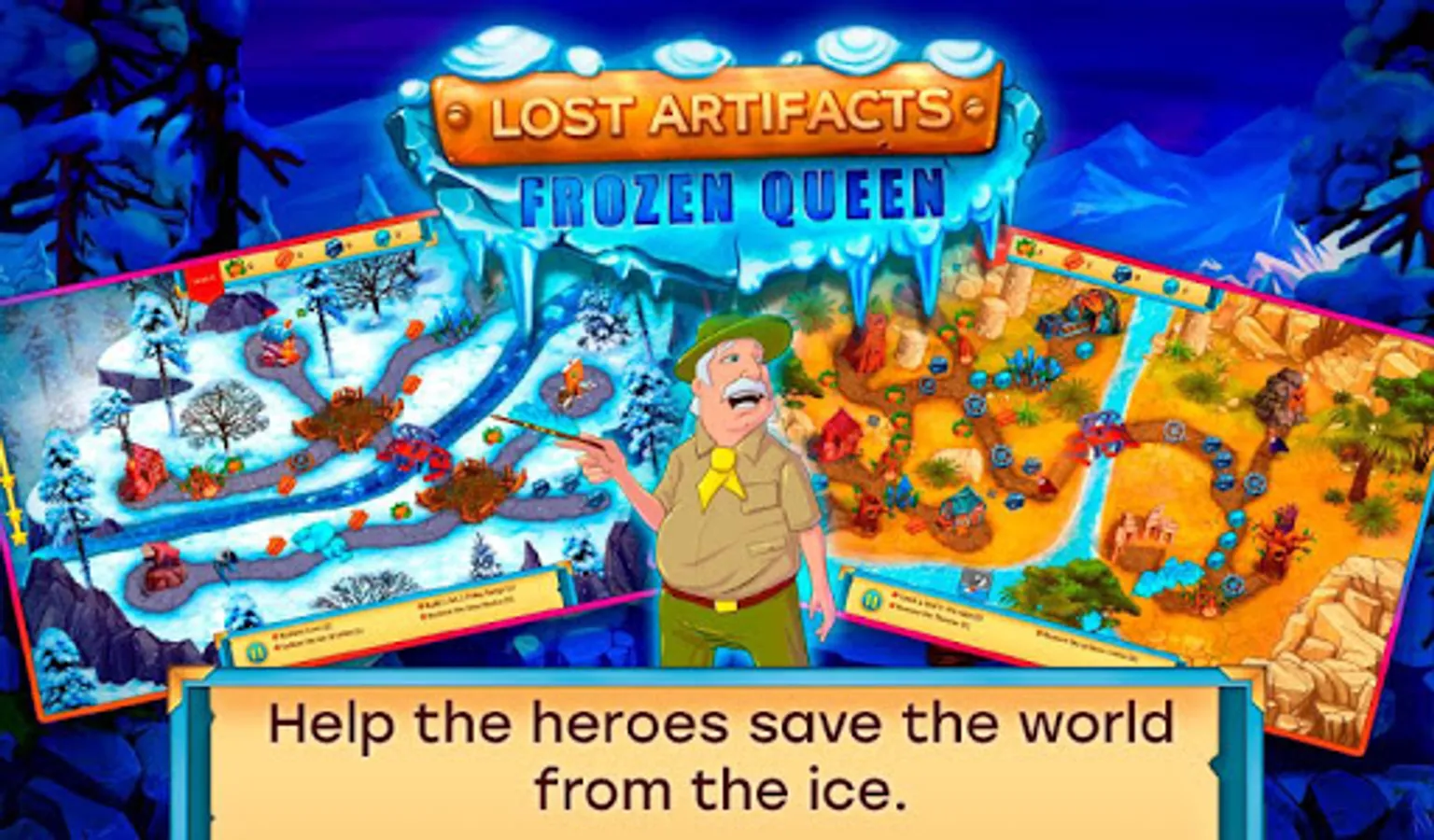 Lost Artifacts: Ice Queen – an exciting strategy game about adventures and archaeological discoveries. Save the world from a global ice age!