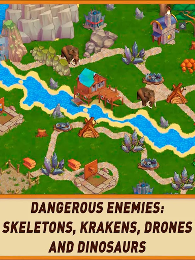 -Dangerous enemies: Skeletons, mammoths, sea monsters, drones, and dinosaurs.