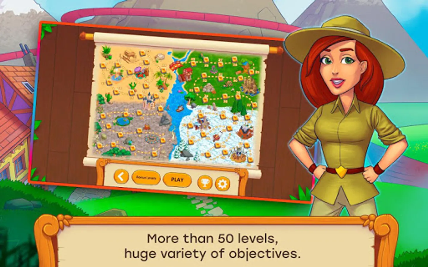 Many varied quests, over 50 levels, a fun storyline, simple and exciting gameplay, and a fantasy world – all this awaits you right now! Create portals, restore epic buildings, seek out extinct animals, overcome challenges and manage resources. Simple controls and a clear tutorial will help you easily learn the basics of the game.