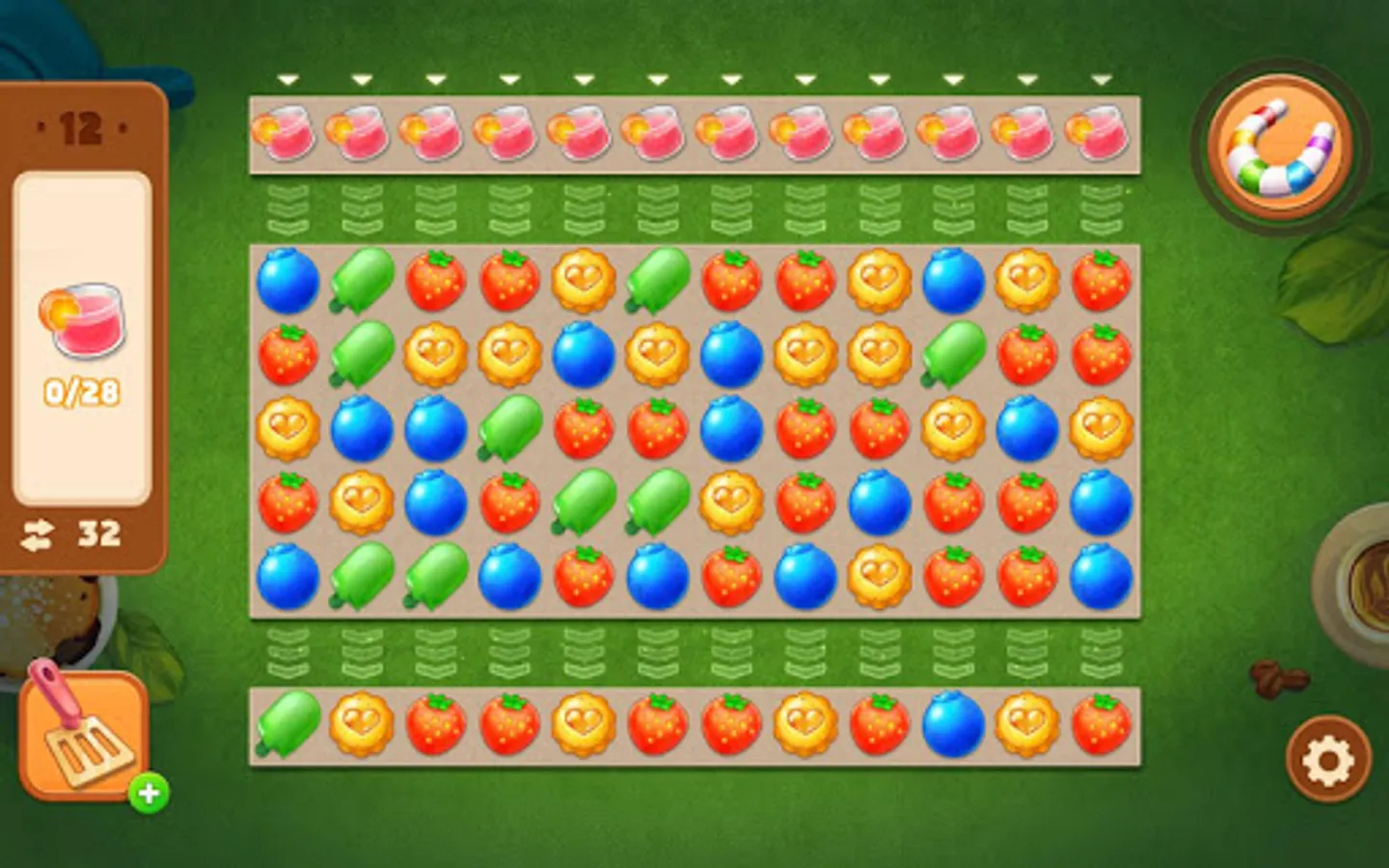 Exciting match-3 levels with colorful bonuses and combos: collect juicy berries and crunchy cookies to complete quests. Build up your own cafe business: choose your item style and create a unique atmosphere