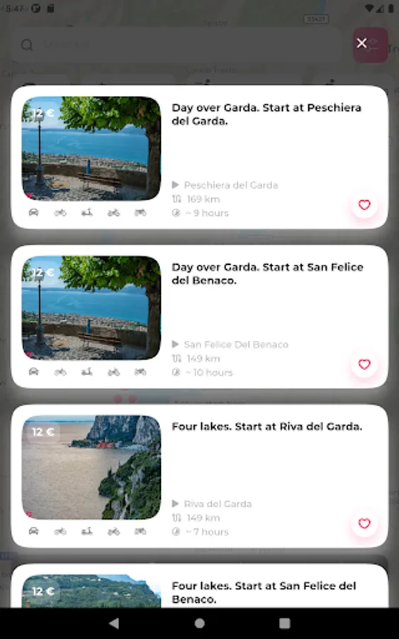 Handy GPS navigator that guides you along the entire route, giving useful tips and warning of dangers. We offer only current routes that are constantly checked by our experts.