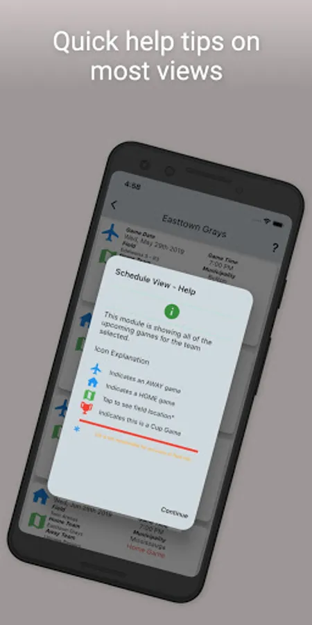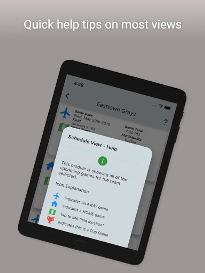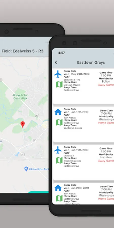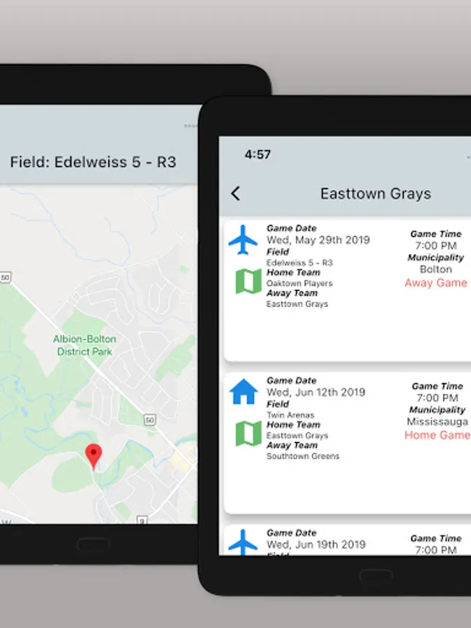 Field location information is also available for upcoming games.