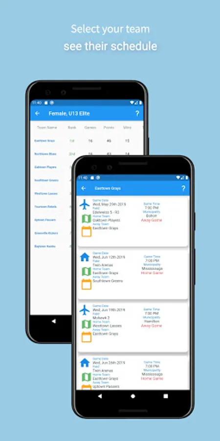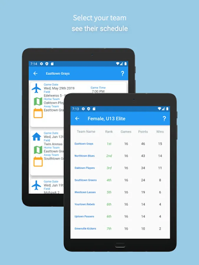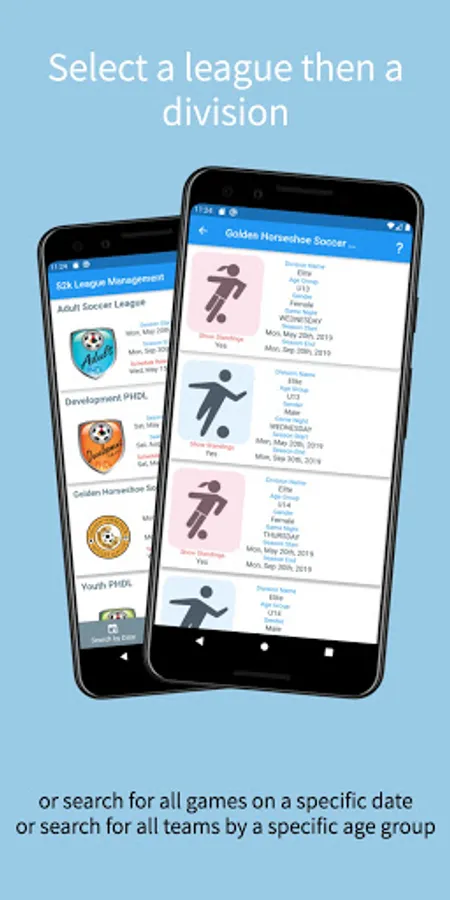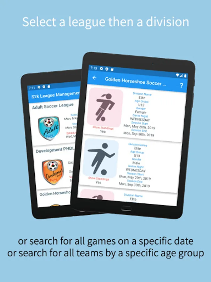 Not sure what league your team plays in, there's an option to search for your team by age group.