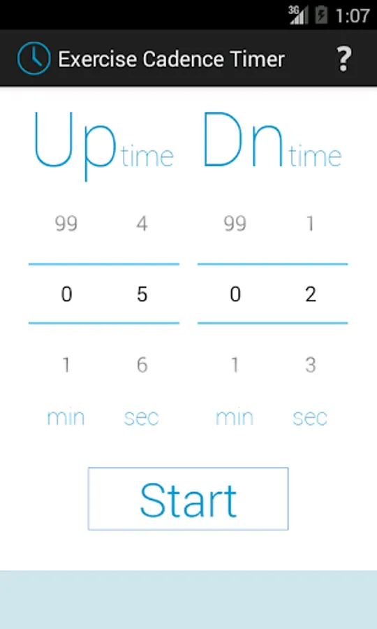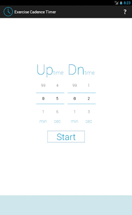 Again, the Exercise Cadence Timer counts down the amount of time for both up (i.e. lifting) and down (i.e. lowering) rhythms of an exercise. It beeps at one second intervals and plays a different sound notification depending on the change of direction.