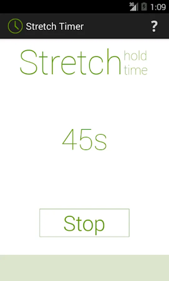 Again, the Stretch Timer counts down the amount of time needed to hold a stretch. Once the time has elapsed, it plays a sound notification and then restarts counting automatically.
