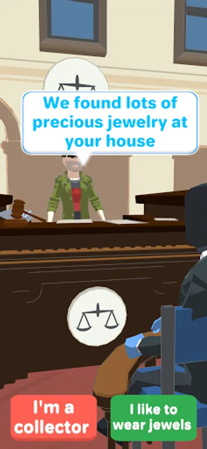 Be smarter than the cop and answer the right sentences to avoid being jailed! Customize your lair and become the richest criminal ever!