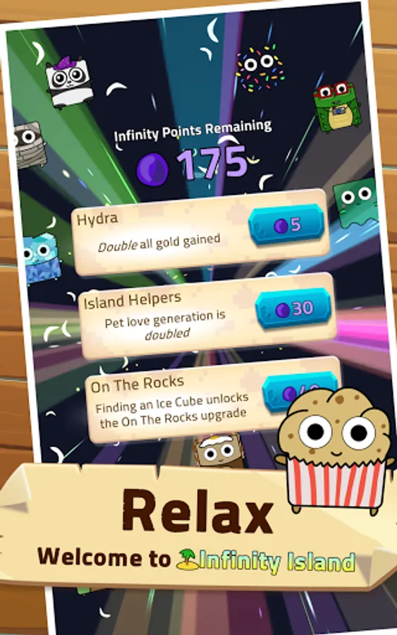 At Infinity Island you can collect pets, unlock cards, build upgrades and find cool treasures.