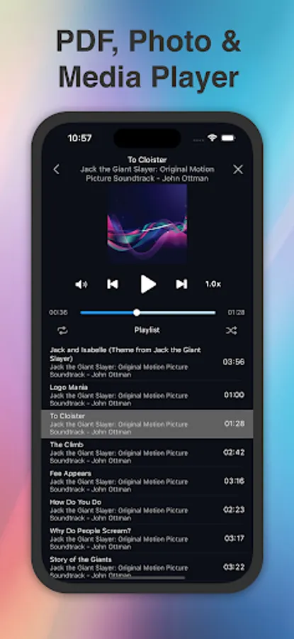 • MULTIMEDIA PLAYER: Create personalized audio playlists with features like repeat, shuffle, background playback, and remote control for multitasking. Stream videos and music directly from your cloud storage.